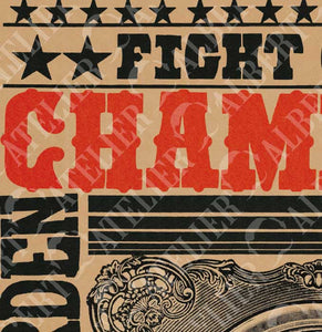 Reproduction de l'affiche du combat du jeune Cassius Clay qui deviendra plus tard "Muhammad Ali".